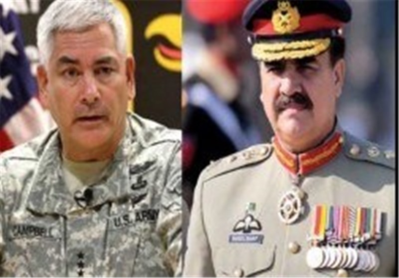 به گزارش گروه بینالملل خبرگزاری تسنیم، «جان کمپبل» فرمانده جدید نیروهای ایساف و «راحیل شریف» رئیس ستاد ارتش پاکستان در مورد هماهنگیهای مرزی میان افغانستان و پاکستان با یکدیگر دیدار و گفتوگو کردند.