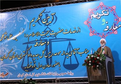 به گزارش خبرگزاری تسنیم از کرمان، با حضور معاون اول قوه قضائیه، معاون ریاست قوه قضائیه و دبیر کمیسیون نقل و انتقالات قضات، امام جمعه کرمان و استاندار کرمان و جمعی از مسئولان از زحمات حجتالاسلام علی توکلی تقدیر و یدالله موحد به عنوان رئیس کل دادگستری استان کرمان معرفی شد.