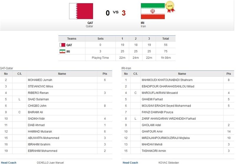 پیروزی تیم ملی والیبال بر شاگردان سیچلو