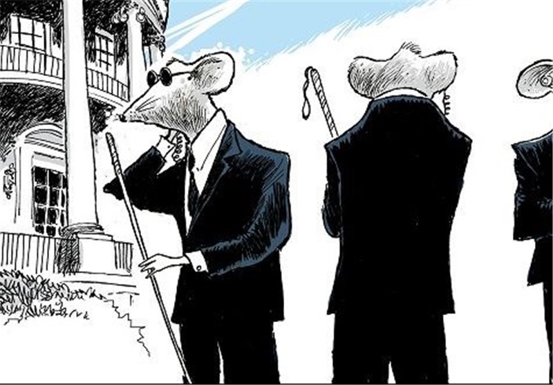 سیستم امنیتی کاخ سفید با چالشهای بسیاری روبهرو شدهاست . اشاره کارتونیست، به موشهای کور محافظ کاخ سفید اشاره به همین موضوع دارد. (Freelance/Self-syndicated)