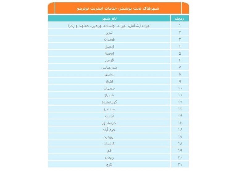 اما نکته جالبی که به چشم میخورد، ظاهرا شهرهای تحت پوشش خدمات نسل سوم این شرکت کمتر از آن چیزی است که در نشست خبری مطرح شد زیرا لیست شهرهای تحت پوشش این خدمات در سایت همراه اول منتشر شده که به شرح زیر است: