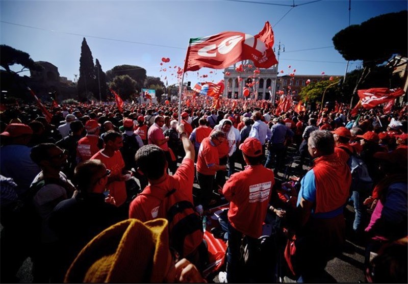 بر اساس این گزارش تظاهرات کنندگان معترض در این راهپیمایی پرچم های قرمز رنگ مربوط به بزرگترین اتحادیه کارگری ایتالیا یعنی سی جی آی ال را در اختیار داشتند. هزاران نفر در این راهپیمایی گسترده حضور داشتند و خواستار ایجاد شغل و امنیت شغلی شدند.