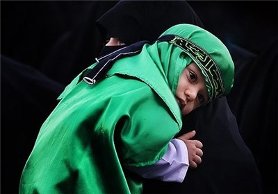 کودکانی که سربندهای یا علیاصغر(ع) و یا رقیه(س) پیشانیهایشان را زیبندهتر کرده بود، با نگاهی پرسشگر به اطراف خود خیره شدهاند، گویی آنها در خیال کودکانه خود قدرت تیر سه شعبه را محاسبه میکنند.