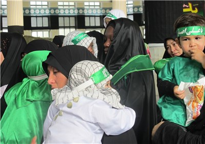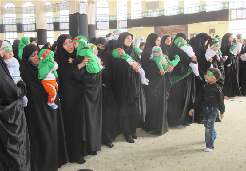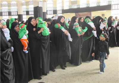 مادران امروز کودکانی خود را در آغوش گرفتهاند و آرامآرام به یاد چشمان بارانی رباب اشک میریزند، کودکان همه با سربندهای یا علیاصغر(ع) برای اقامه عزای دردانه حسین(ع) در این محفل عزا جمع شدهاند.