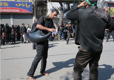 دستههای سینهزنی و زنجیززنی با حضور پور شور در حرم مطهر احمد بن موسی شاهچراغ (ع) به این آستان مقدس ادای احترام کرده و به عزاداری پرداختند.