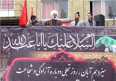 راهپیمایی یوم الله 13 آبان با سر دادن شعارهای "مرگ بر اسرائیل" و "مرگ برآمریکا" و شعارهایی با مضامین قیام عاشورای حسینی و خواندن بیانیههای دانش آموزی و دانشجویی دوام مییابد؛ در زنجان راهپیمایی از چهارراه امیر کبیر آغاز و تا چهار راه انقلاب ادامه داشت.