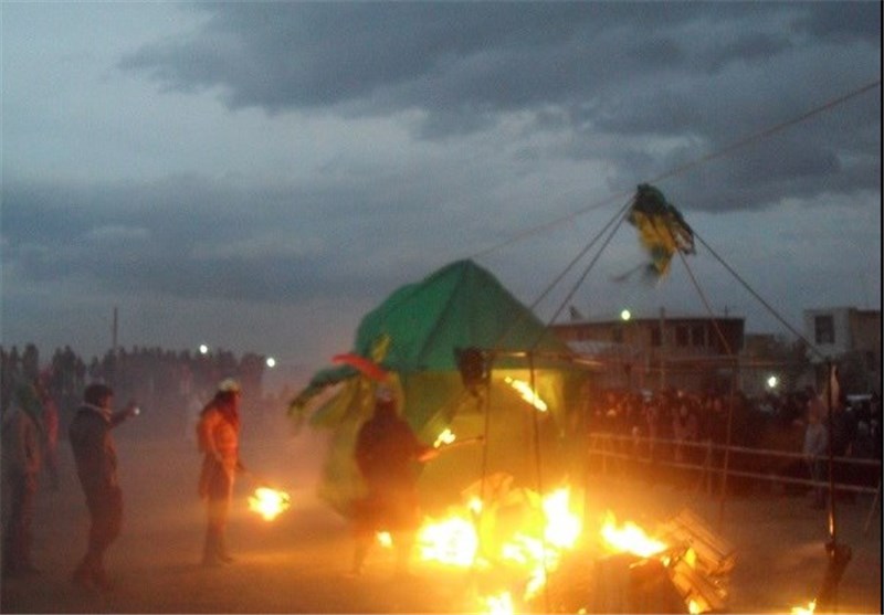 برگزاری آئین نمادین آتش زدن خیمه‌ها عصر عاشورا در گلپایگان