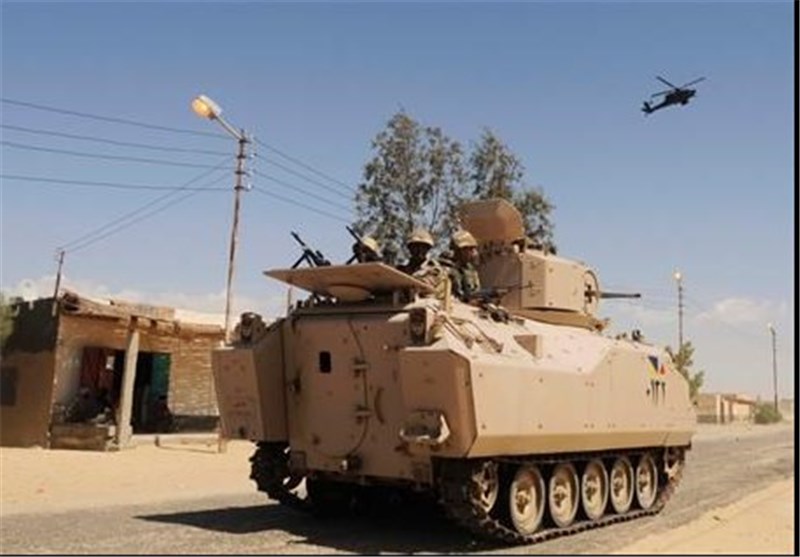 از سوی دیگر منابع مصری گزارش دادند که دقایقی پیش یک بالگرد نظامی مصر مکان تجمع تروریست ها در جنوب شیخ زوید در استان شمال سینا را بمباران کرد.