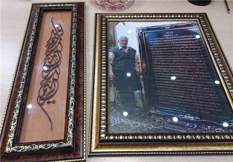 هداوند احمدی گفت: وقتی به سراغ وسایل ها رفتم اولین چیزی که درست کردم نام الله بود و از آن روز بدون اینکه سواد خواندن و نوشتن داشته باشم شروع کردم به حکاکی آیات قرآن و اسامی ائمه و دعاها.