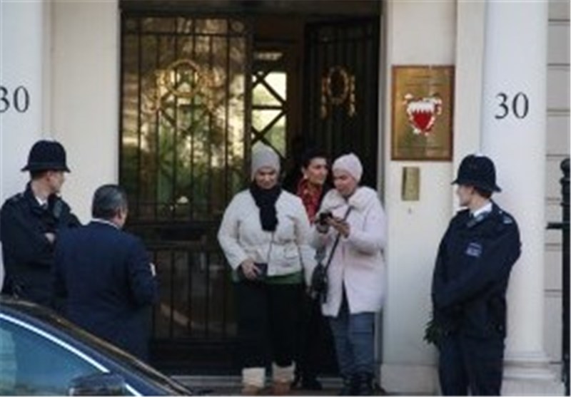 تحصن بحرینی ها در مقابل سفارت آل خلیفه در لندن + عکس