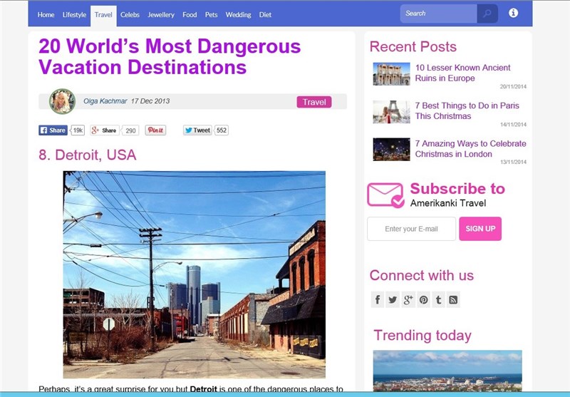 به گزارش خبرنگار اجتماعی خبرگزاری تسنیم، 20 شهر و منطقه در دنیا که جزو خطرناک ترین مناطق دنیا برای گردشگران است، معرفی شد.