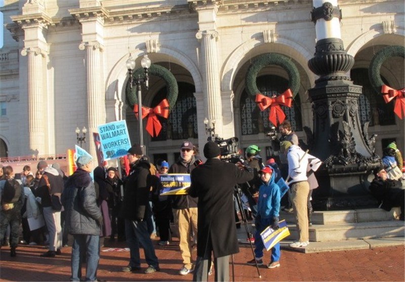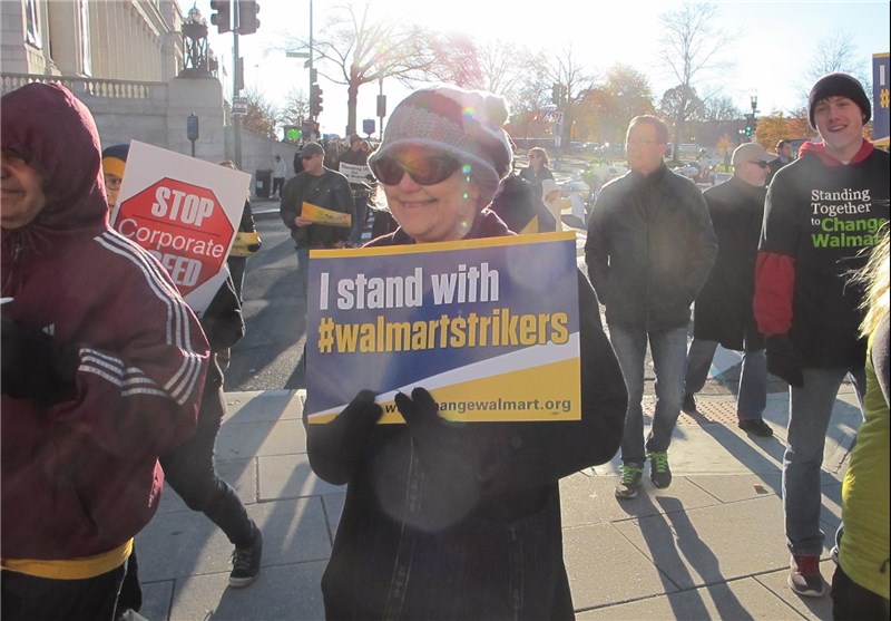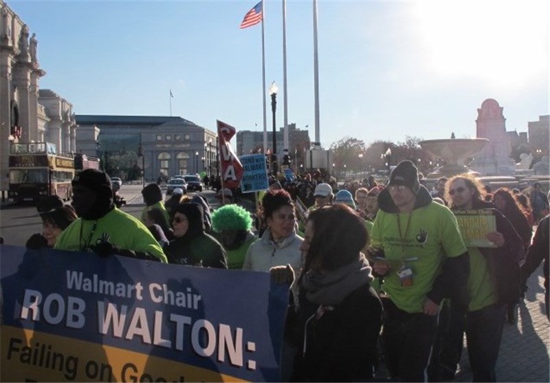 به گزارش خبرنگار تسنیم در واشنگتن، والمارت یکی از ثروتمندترین شرکتهای دنیا به شمار میرود اما رفتار مناسبی با کارمندان و کارگران خود ندارد. اکثر افرادی که در فروشگاههای این شرکت مشغول به کار هستند حقوقی نزدیک به 15 دلار در ساعت دریافت میکنند که این مسئله اعتراض بسیاری از آنها را بههمراه داشته است. در همین راستا برخی از مردم واشنگتن در همبستگی با کارگران فروشگاههای زنجیرهای والمارت در روز جمعه سیاه دست به تظاهرات زدند.