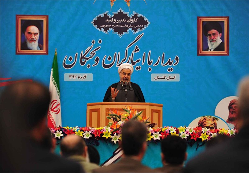 به گزارش خبرگزاری تسنیم از گرگان، حجتالاسلام حسن روحانی در جمع نخبگان و ایثارگران استان گلستان در مصلی نمازجمعه گرگان سخنرانی کرد و گفت: امروز ملت ایران در مسیر منافع و آرمانها ایستادگی میکند. ایستادگی و مقاومت ما را در برابر هر مانعی پیروز میکند.