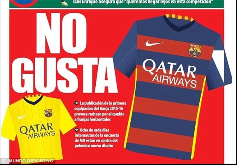 روزنامه «موندو دپورتیوو» چاپ کاتالونیا در شماره امروز خود اقدام به انتشار آمار نظرسننجی خود مبنی بر اینکه «آیا موافق این هستید نوارهای راه‌ راه‌ پیراهن بارسلونا از شکل عمودی به افقی تغییر کند؟» منتشر کرد که در این بین 78 درصد رأی منفی داده‌ و تنها 22 درصد رأی مثبت داده‌اند که این یعنی از هر 10 نفر 8 نفر با این تغییر موافق نیستند.