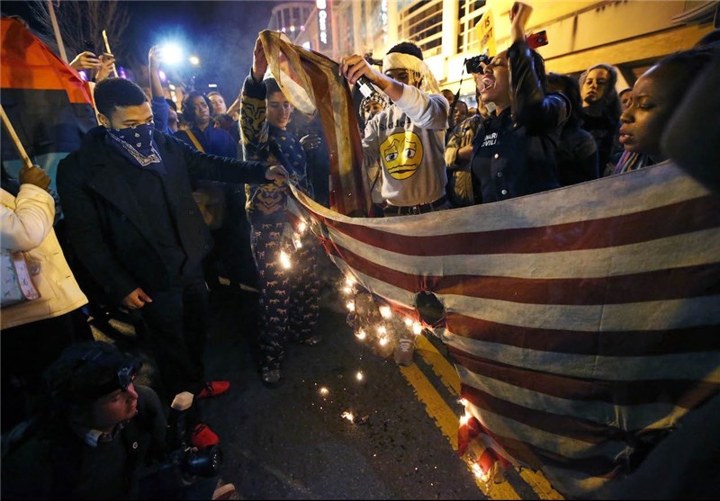 19 مهر، معترضان خشمگین آمریکایی این بار در تظاهراتی پرچم این کشور را آتش زدند.