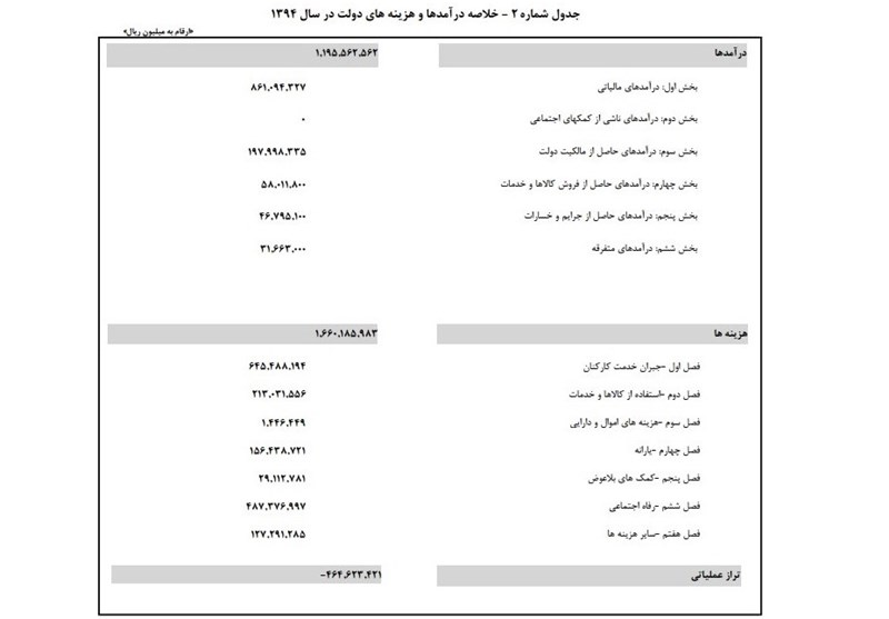 ارقام مهم بودجه 94 در جداول زیر قابل مشاهده است: