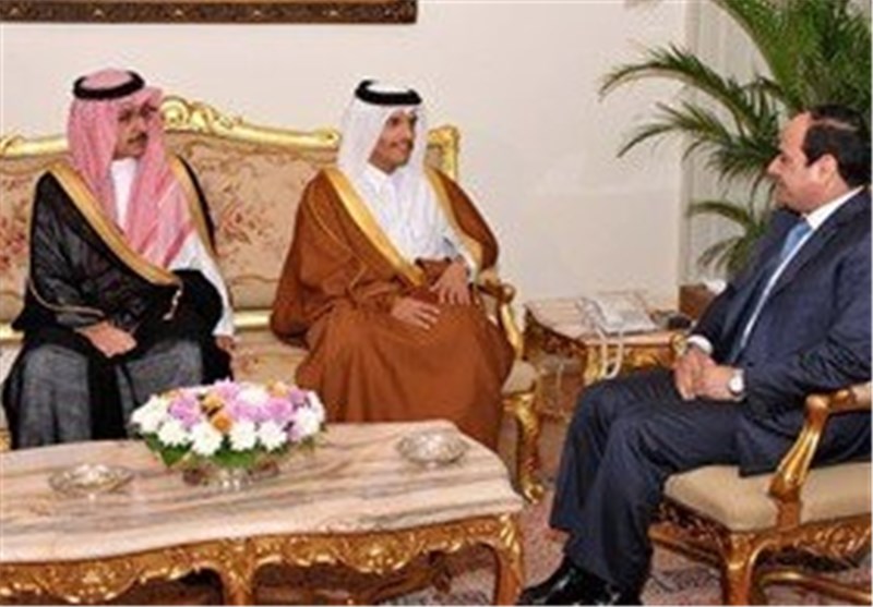 به گزارش گروه بین الملل خبرگزاری تسنیم، شبکه العربیه گزارش داد که فرستاده شیخ «تمیم بن حمد آل ثانی» در حضور «خالد التویجری» رئیس دیوان پادشاهی عربستان با «عبد الفتاح السیسی» به منظور به جریان انداختن طرح ملک عبد الله درباره آشتی بین مصر و قطر دیدار کرد.