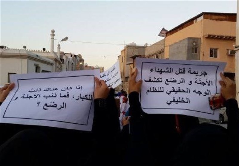 تظاهرات بانوان بحرینی با این پرسش درباره قتل کودکان در رحم و کودکان شیرخواره برگزار شد که "بای ذنب قتلوا؟!" (به کدامین گناه به قتل رسیدند).