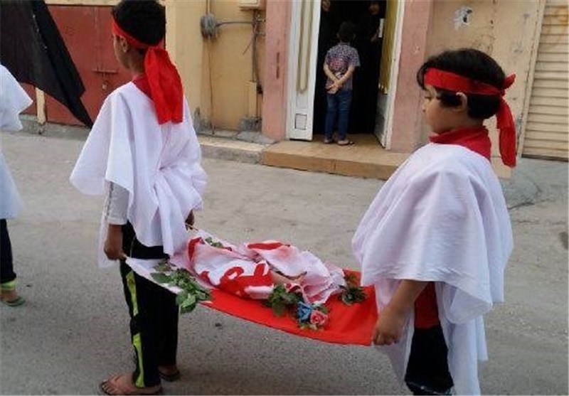 در این تظاهرات شماری از کودکان بحرینی نیز تصاویر کودکان به قتل رسیده را دست داشتند و در لباس سفید، پیکرهای نمادین آنها را حمل می کردند.