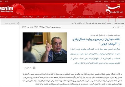 * حمید رسایی نماینده مردم تهران در مجلس اعلام کرد: با امضای برخی حامیان دیروز موسوی در مجلس و برخی از اعضای هیات رئیسه، نمایندگان شکایتکننده از موسوی به 144 نفر رسیدند.