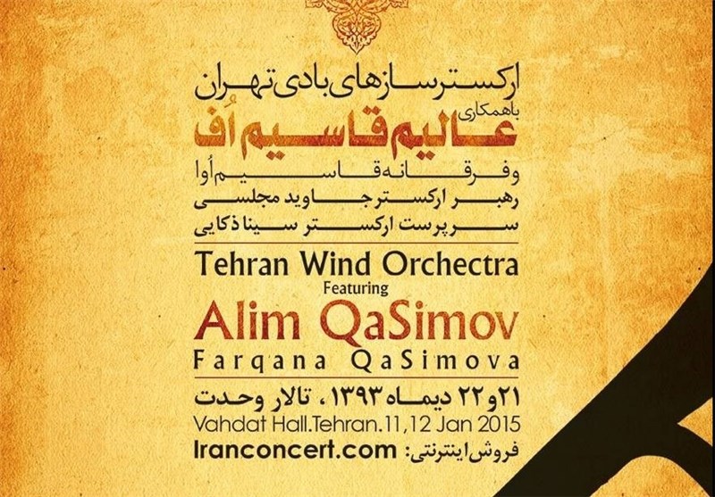 به گزارش خبرگزاری تسنیم، ارکستر بادی تهران به سرپرستی «سینا ذکایی» و با خوانندگی عالیم قاسماف در تاریخ 21 و 22 دی 1393 در تهران و تالار وحدت روی صحنه میرود.