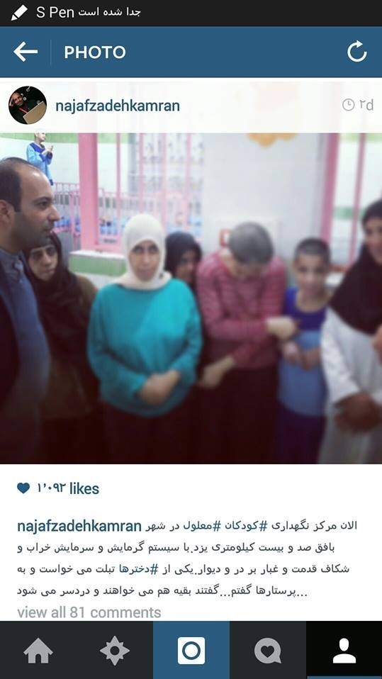 به گزارش گروه رسانه های خبرگزاری تسنیم، نجف زاده در فیس بوک و اینستاگرام خودنوشت:نود درصد کودکان کار مجبورند در آمد خود را به پدر و مادر یا صاحب کارشان بدهند و چقدر خوب در اتومبیل خود همیشه چند پاکت شیر یا آب میوه و کیک یا میوه فصل داشته باشیم و وقتی این کودکان سراغمان می آیند بجای بی محلی یا پول دادن؛ به آنها خوراکی بدهیم.