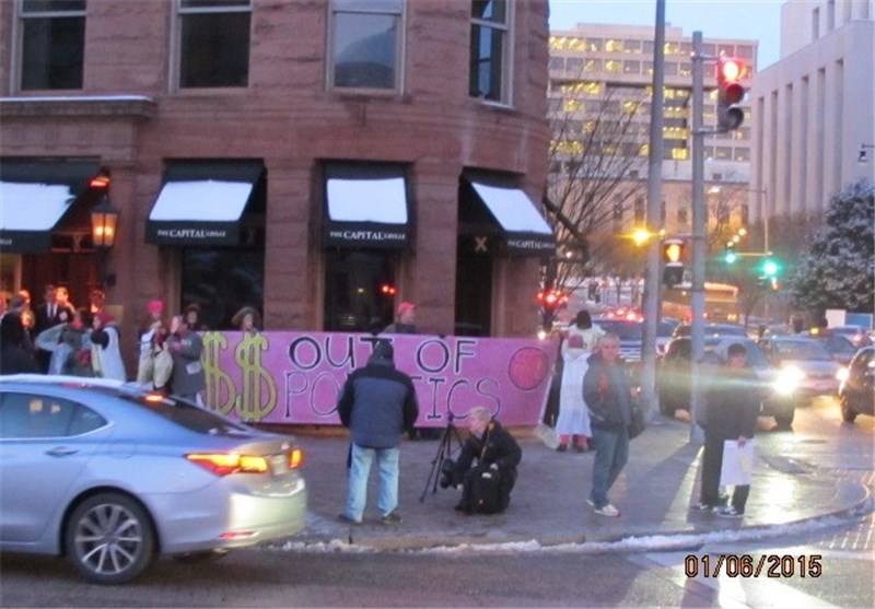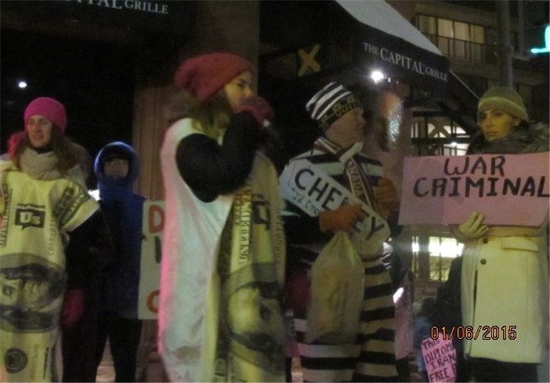 به گزارش خبرنگار خبرگزاری تسنیم مستقر در واشنگتن، تعدادی از فعالان ضدجنگ آمریکایی درپی خبر جلسه مقامات جمهوریخواه و جنگطلب در رستورانی واقع در واشنگتن در اطراف آن تجمع کردند.