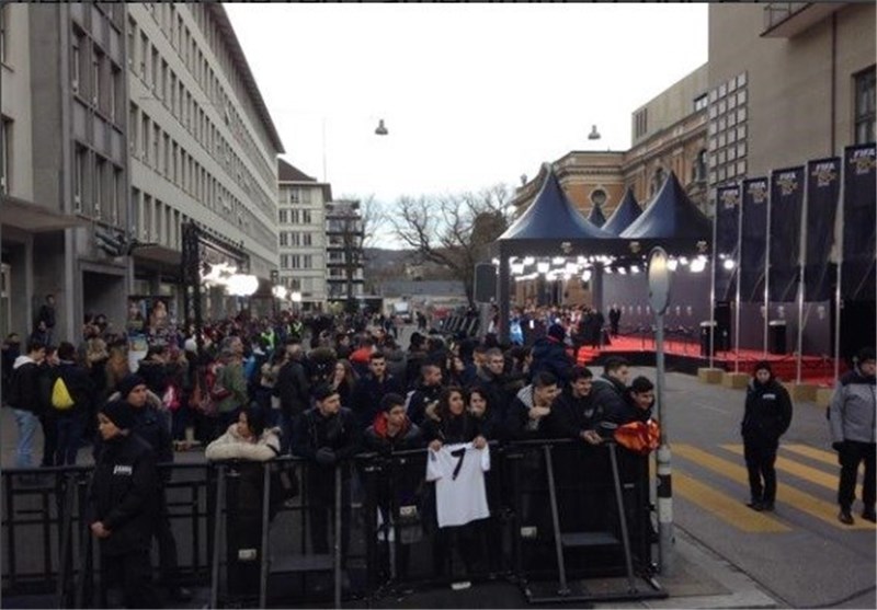 حضور هواداران در مراسم فرش قرمز معرفی برترینهای دنیای فوتبال در سال 2014 در مقر فیفا در شهر زوریخ سوئیس