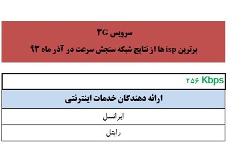 مرکز مدیریت توسعه ملی اینترنت طی سنجش سرعت اینترنت برترین ISPهای 3G در آذرماه سال جاری، ایرانسل را در رده بالاتری از رایتل قرار داده است.