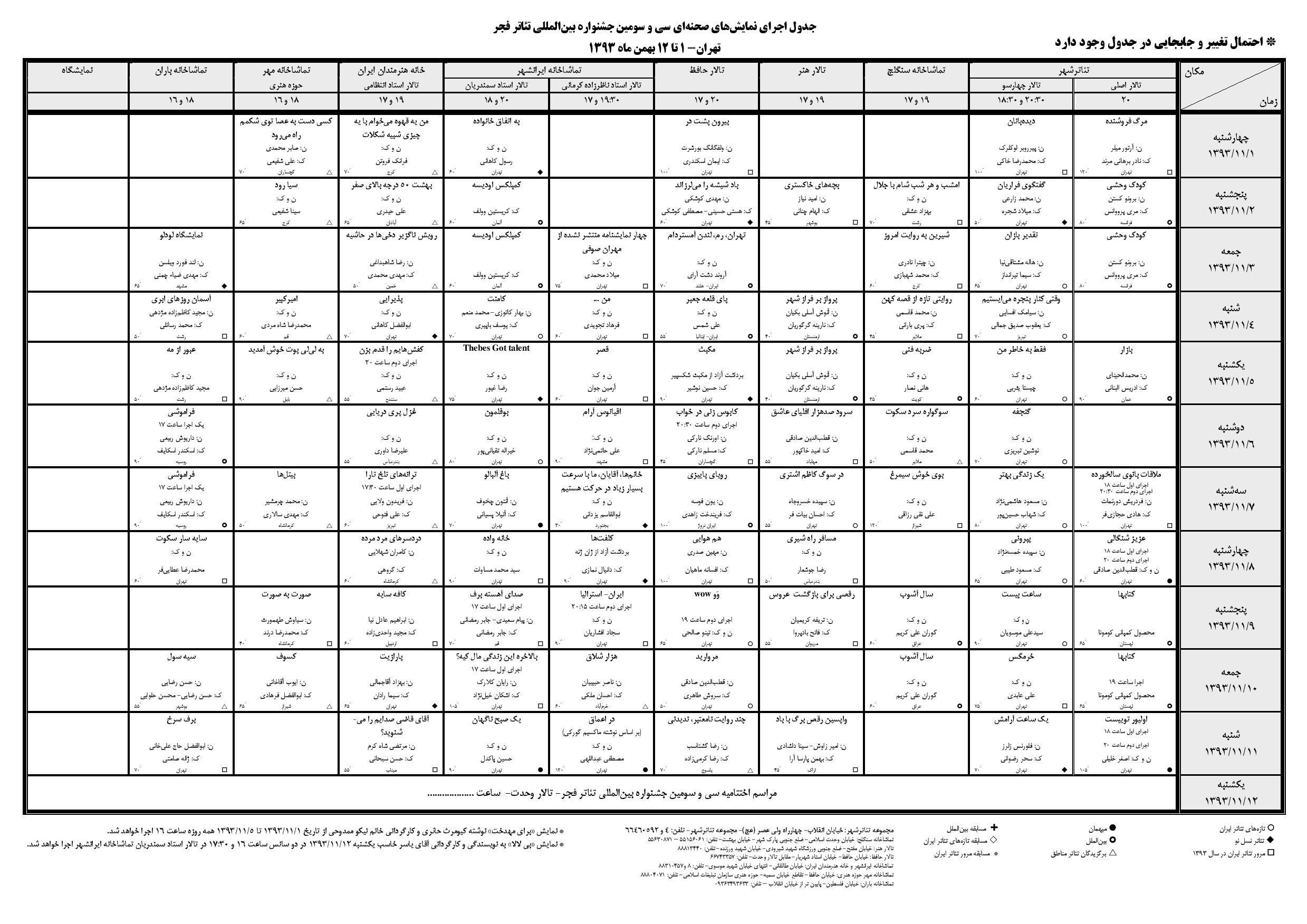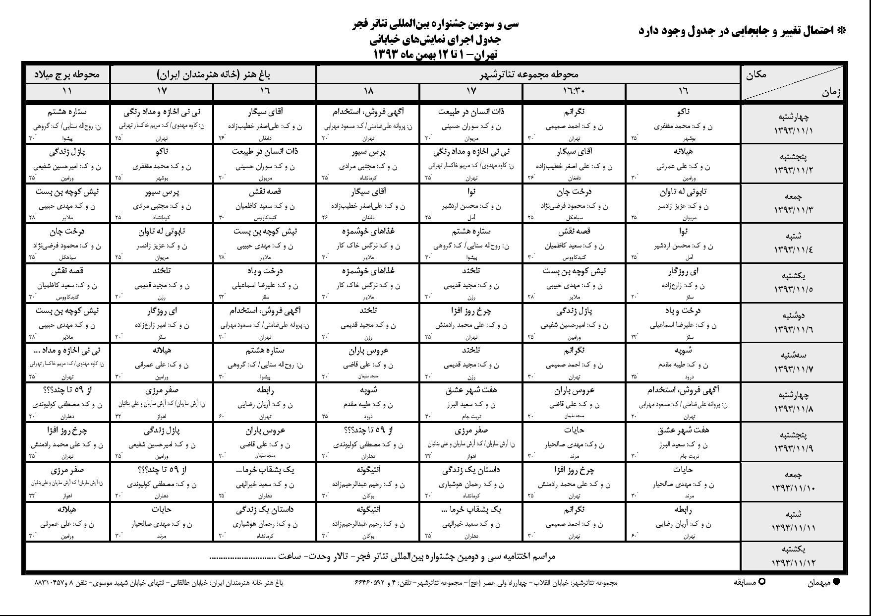 احتمال تغییر و جابجایی در جدول اجرای نمایشهای صحنهای سیوسومین جشنواره بینالمللی تئاتر فجر وجود دارد.