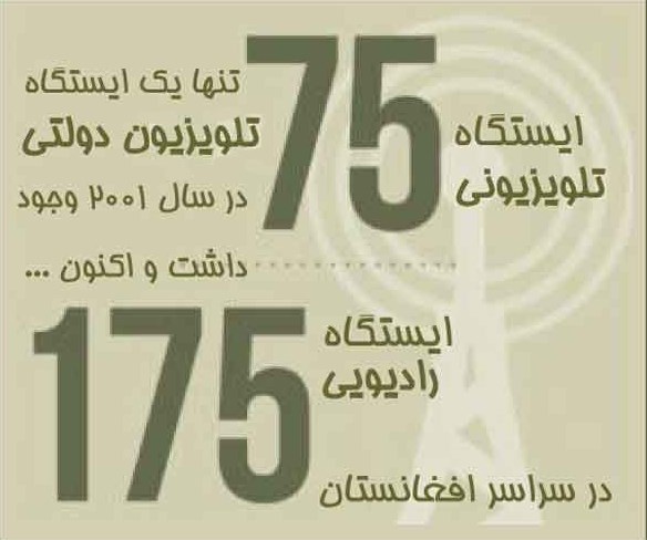 یکی دیگر از پیشرفتهای افغانستان و برقراری دموکراسی در این کشور بهزعم کشورهای غربی، افزایش تعداد رسانهها بهویژه ایستگاههای رادیویی و تلویزیونی است. براساس گزارشها، تاکنون تعداد تلویزیونها در افغانستان 75 و رادیو 175 است. حال سؤال اینجاست که آیا این رسانهها توانستهاند که افکار عمومی افغان را بهسمت فرهنگ واقعی افغانستان و آگاهیبخشی مؤثر هدایت کنند؟