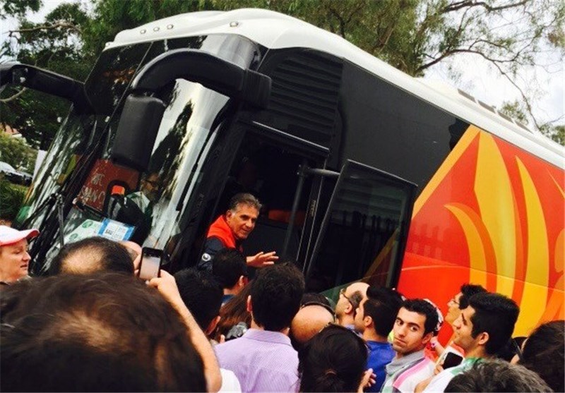 پیش از آغاز این دیدار گوینده ورزشگاه با اعلام اینکه کارلوس کیروش سرمربی تیم ملی ایران است، از سابقه مربیگری او در رئالمادرید، منچستریونایتد و تیم ملی پرتغال گفت. وی پس از اعلام سوابق کیروش اعلام کرد: از حضور این مربی در بریزبین استقبال میکنیم و به او خوشآمد میگوییم.