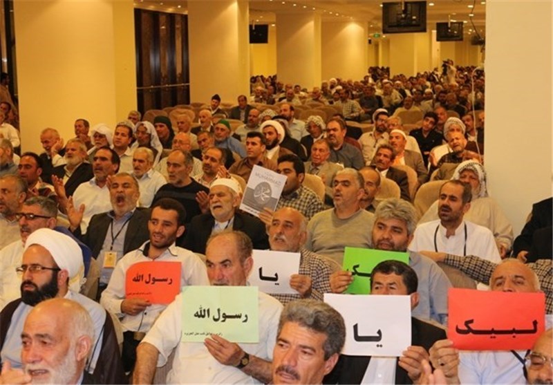 زائران شرکت کننده در این همایش بزرگ نوشته هایی با مضامین "لبیک یا رسول الله" و من "عاشق محمد(ص)" هستم را در دست داشتند و بارها به ذکر صلوات بر حضرت محمد(ص) و خاندان پاک و مطهر آن حضرت کردند و آرزوی نابودی دشمنان اسلام را از خدای کعبه طلبیدند.