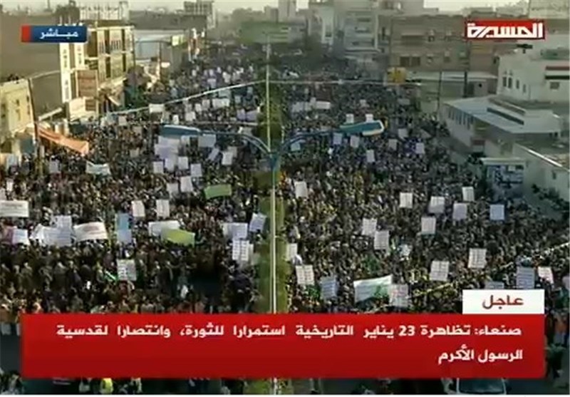 تظاهرات حامیان انصارالله در حالی برگزار شد که در پی استعفای روز گذشته عبدربه منصور هادی رئیس جمهور یمن و دولت او، این کشور وارد مرحله جدیدی شده است.