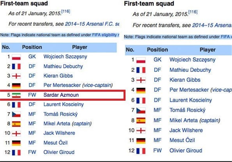 سایت «دیلی استار» انگلیس گزارش داد؛ هواداران امیدوار آرسنالی که ظاهراً تمایل زیادی برای پیوستن آزمون به تیم خود دارند با رجوع به صفحه تیم فوتبال «آرسنال» در سایت «ویکیپدیا» نام سردار را در فهرست اولیه تیمشان قرار دارند. نکته جالب اینجاست که هواداران آرسنال پیراهن شماره 5 را هم برای وی در نظر گرفتند ولی مدیران این سایت خیلی سریع این اشتباه کاربران خود را اصلاح کردند.