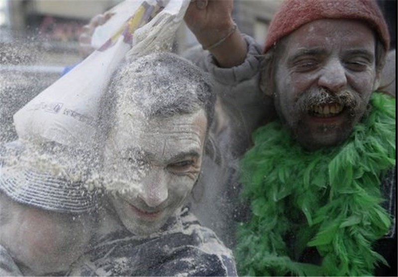 خبرگزاری تسنیم: در این مراسم که در جریان جشنواره شینزو دی لیمیا در اسپانیا برگزار می شود، شرکت کنندگان به سمت یکدیگر آرد و پوست گندم پرتاب می کنند.
