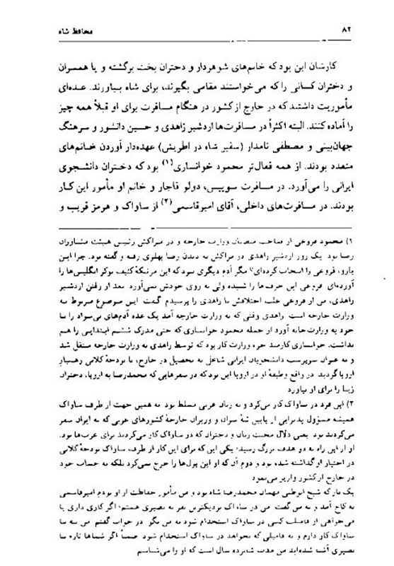 ... ابتدا کامبیز آتابای یک نفر را به کاخ شهوند می‌آورد و کار که تمام می‌شد، جهان‌بینی به عرض می‌رساند: قربان، آقای سلیمانی با مهمان در منزل آقای ابوالفتح محوی منتظر است ... دو ساعت بعد جهان‌بینی جلوی در ورودی به عرض می‌رساند: قربان حسین دانشور با مهمان در حصارک منتظر تشریف‌فرمایی شما هستند ... .