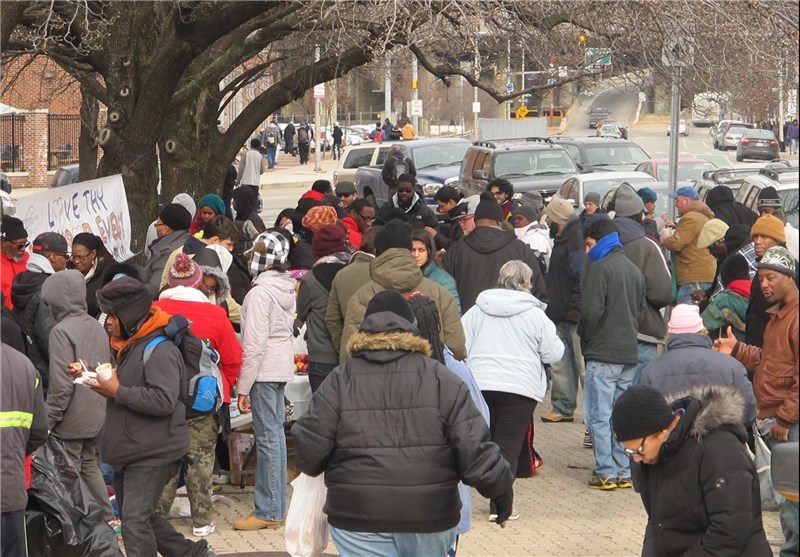 هجوم بی‌خانمان‌های آمریکایی برای دریافت غذا در بالتیمور + عکس و فیلم