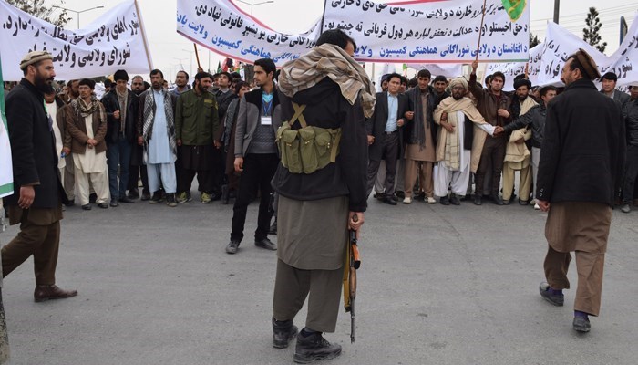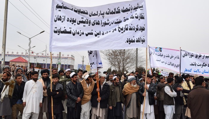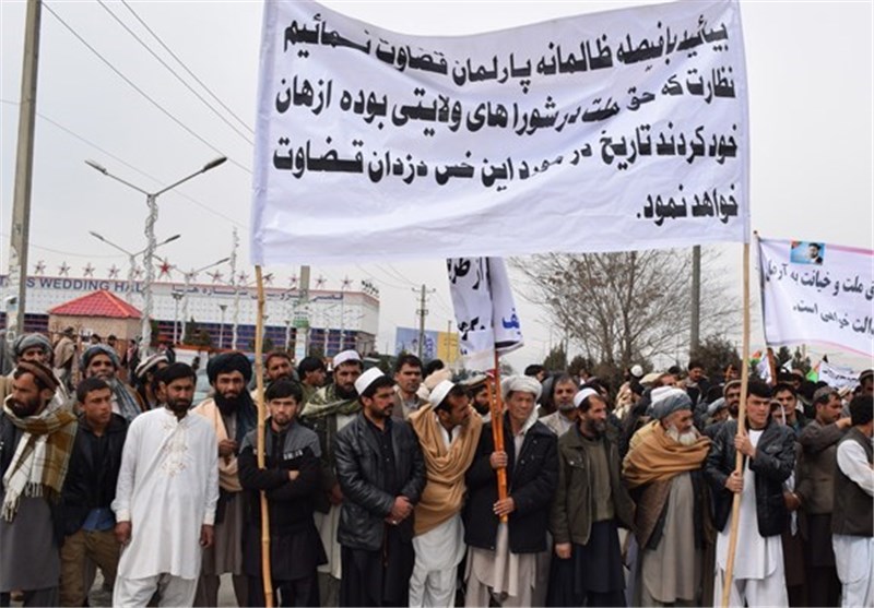 تظاهراتکنندگان به حذف نقش نظارتی اعضای شورای ولایتی از سوی پارلمان افغانستان اعتراض داشتند.