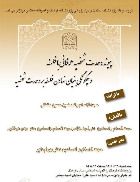 نشست پیوند وحدت شخصیه عرفانی با فلسفه  برگزار می‌شود