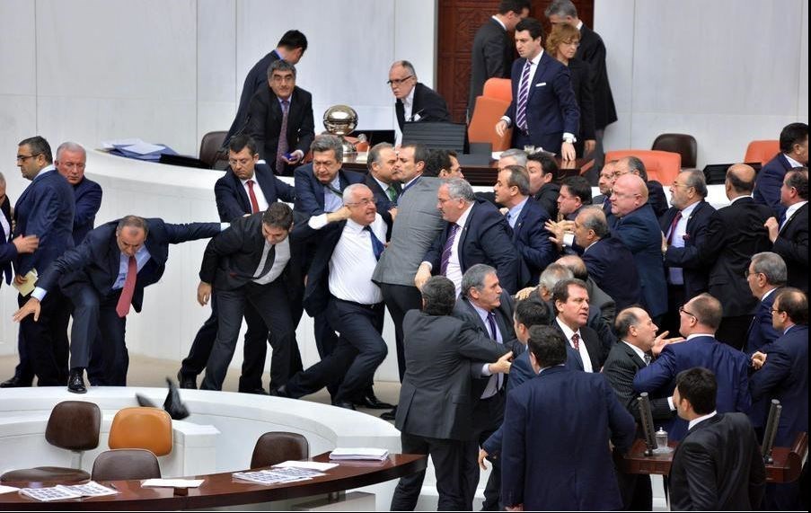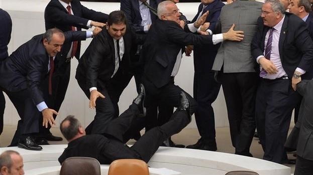 مناقشات لفظی بین طرفین به سرعت تشدید شده و تبدیل به مشت و لگد شد. اورهان دوزگون، یکی از نمایندگان حزب جمهوری خلق، در جریان درگیریها از پلهها به پایین پرتاب شد. وی از انتقال به بیمارستان اجتناب ورزیده و اعلام گرد که برای تداوم نبرد در پارلمان خواهد ماند.
