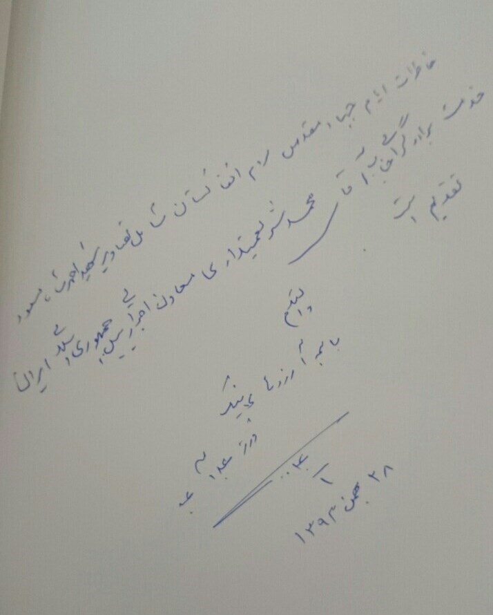 در ادامه دست نوشته عبدالله عبدالله رئیس اجرایی حکومت وحدت ملی افغانستان و تصاویری از او که در این کتاب منتشر شدهاست، را مشاهده کنید: