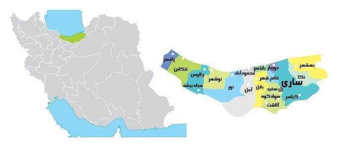 ساری : آبشار داراب کلا، پارک رودخانه تجن، پارک جنگلی شهید زارع، پارک جنگلی میرزا کوچک خان، پناهگاه حیات وحش دشت ناز، پناهگاه حیات وحش سمسکنده، سد سلیمان تنگه، غار هیلدو.