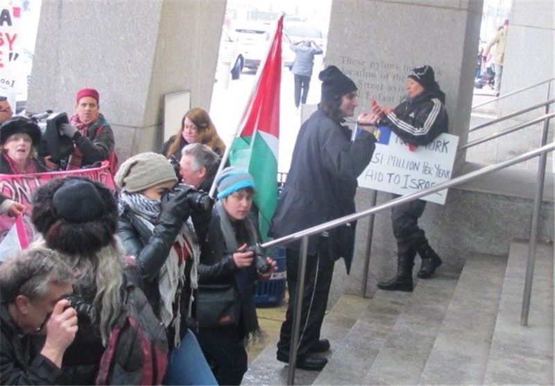 خبرگزاری تسنیم: ده‌ها نفر از فعالان سیاسی در اعتراض به سفر نتانیاهو به آمریکا مقابل محل نشست سالیانه آیپک تجمع کردند که در نتیجه اعتراضات آنها 5 نفر بازداشت شدند.