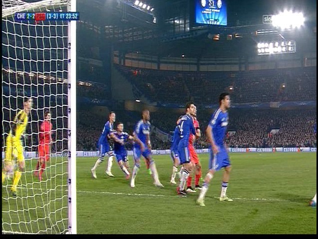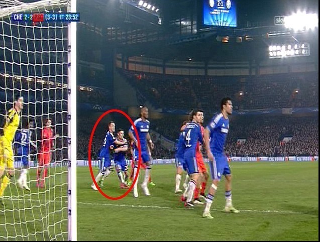 هنگام ارسال این ضربه کرنر، جان‌تری مدافع میانی و کاپیتان چلسی به جای کنترل یکی از بازیکنان حریف به اشتباه هم تیمی خود گری‌ کیهیل را مهار کرده بود و این اتفاق تیاگو سیلوا را آزاد گذاشت تا با یک ضربه سر زیبا برای دومین بار کار را برای پاریسی‌ها به تساوی بکشاند.