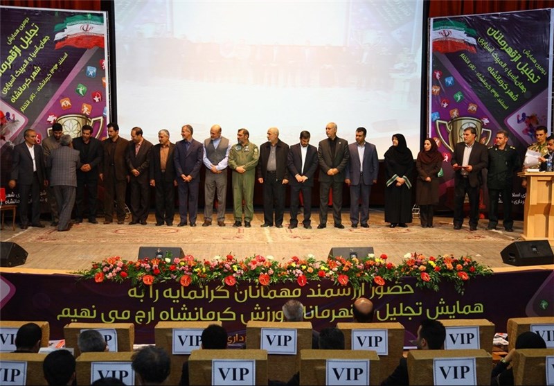 در این مراسم از کیانوش رستمی قهرمان کرمانشاهی رشته وزنهبرداری، محمد صفاییمجد در رشته سپک تاکرا، بهمن پرورش ورزشکار و غواص فداکار، اکرم عبدالمالکی به عنوان نخستین بانوی مسلمان قهرمان در ورزشهای رزمی جهان و پریسا امانی نخبه علمی استان کرمانشاه تقدیر شد.