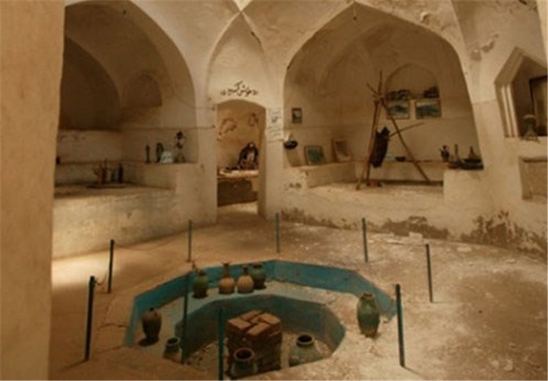 طاق این محوطه شش ضعلی حمام گنبدی شکل است و سربینه هشت ضلعی آن در قسمت جلویی راهروی ورودی قرار دارد. در شش ضلع سربینه، شش صفه برای کندن لباسها ساخته شده است و سقف این صفهها به صورت جناغی است. گرمخانه حمام از سه قسمت مرکزی، خزینه آب سرد و خزینه آب گرم تشکیل شده و دارای سقفی با طاق جناغی است.
