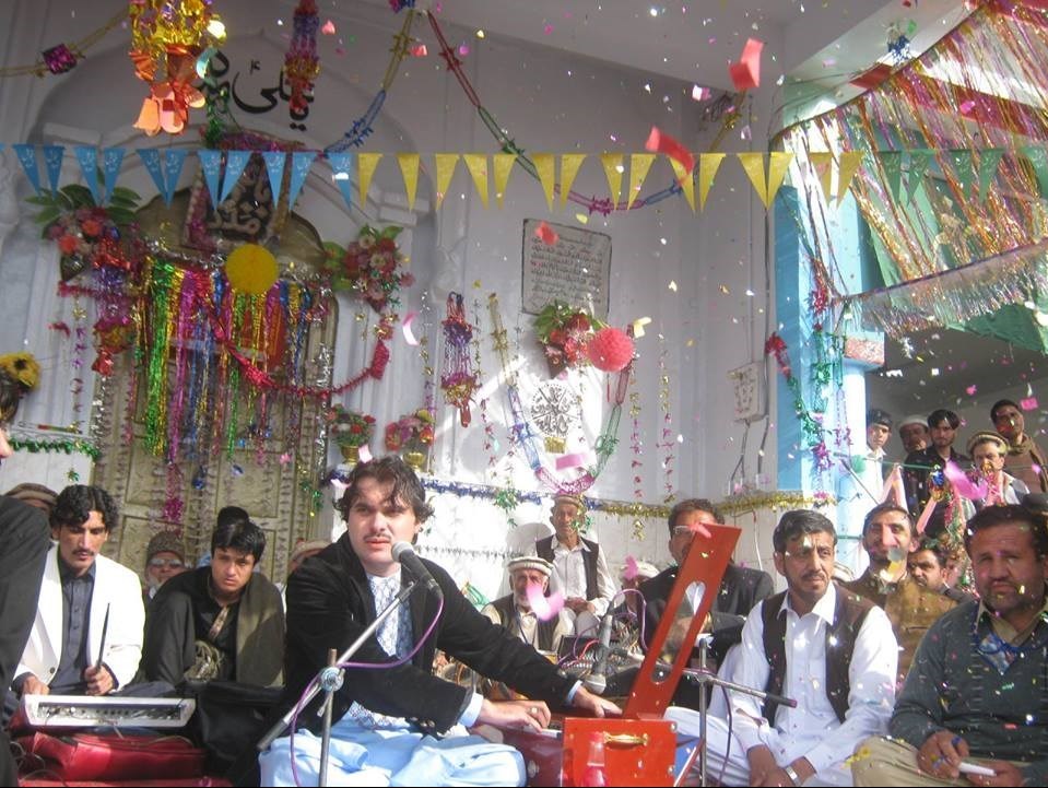 خوانندگان در قدمگاه امام علی (ع) در روستای زیران مدحهایی در مورد امام میخوانند و مردم نیز با ذوق و شوق آن را گوش میدهند.