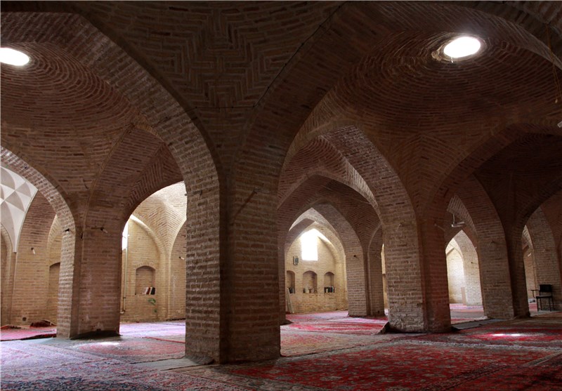 از خصوصیات بارز این بنا ستونهای ظریف هشتضلعی آجری و طاقهای جناقی تند است که از 40 ستون این بنا، 32 ستون باقی است.