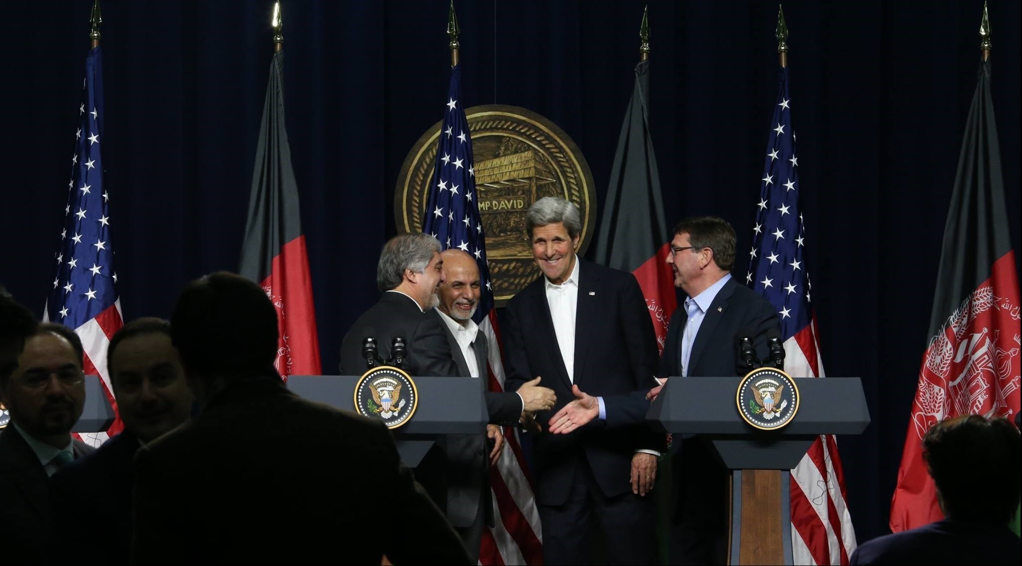 «جان کری» وزیر امور خارجه آمریکا، نیز پس از دیدار با اشرفغنی و عبدالله در کمپ دیوید به خبرنگاران گفت: آمریکا متعهد شده است که بودجه لازم برای تأمین 352 هزار نیروی نظامی افغانستان تا سال ٢٠١٧ میلادی را فراهم کند.